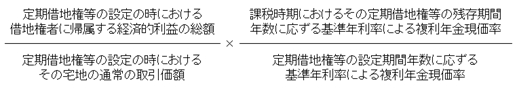ただし、定期借地権等の設定時と課税時期とで、借地権者に帰属する経済的利益に変化がないような場合等、課税上弊害がない場合に限り、その定期借地権等の目的となっている宅地の課税時期における自用地としての価額に、次の算式により計算した数値を乗じて計算することができます。
