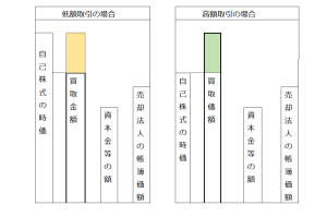 自己株式の時価と買取価額の差額(次の図の塗りつぶし部分)は、何を構成しているのかという疑問です。